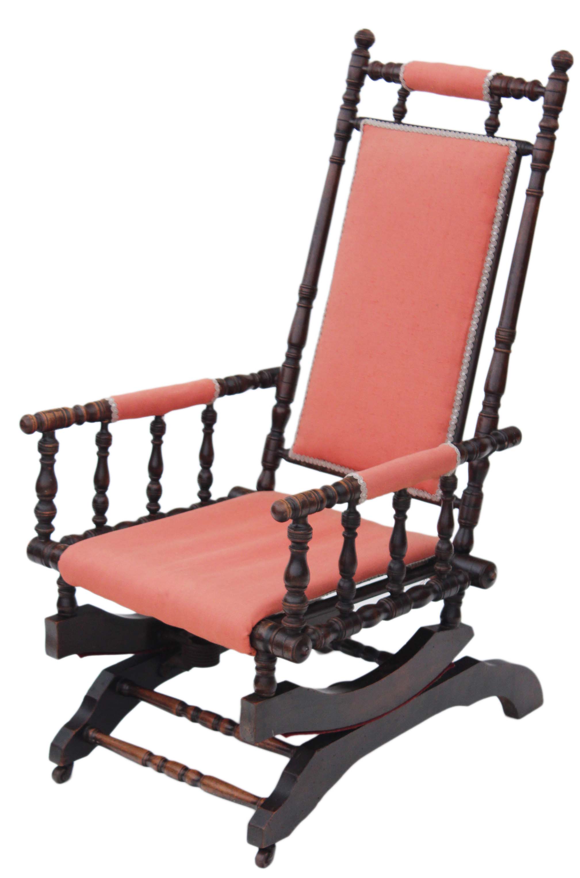 19th Century Victorian American Walnut Beech Oak Rocking Chair