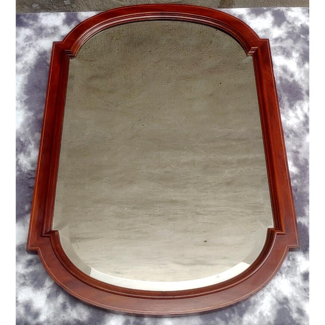 19th Century Victorian Antique Inlaid Mahogany Bevel Edge Oblong Wall Mirror