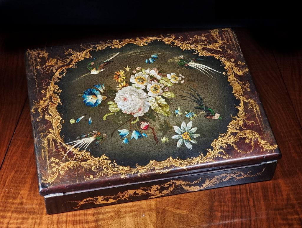 19th Century Victorian Antique Lacquered Writing Slope / Lap Desk
