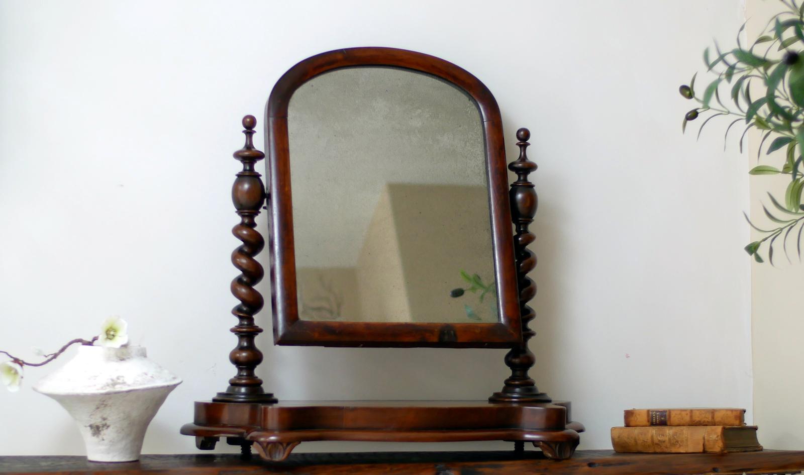 Exquisite Victorian Mahogany Barley-Twist Table Mirror