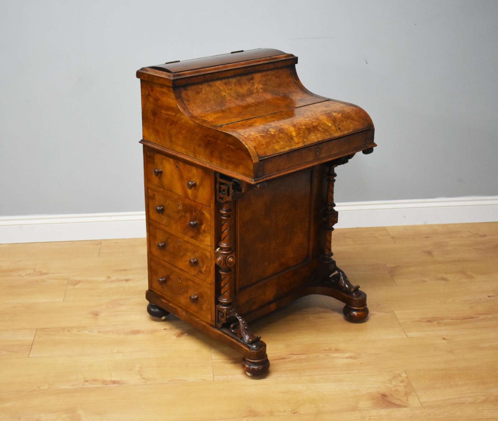 19th Century Victorian Burr Walnut Davenport