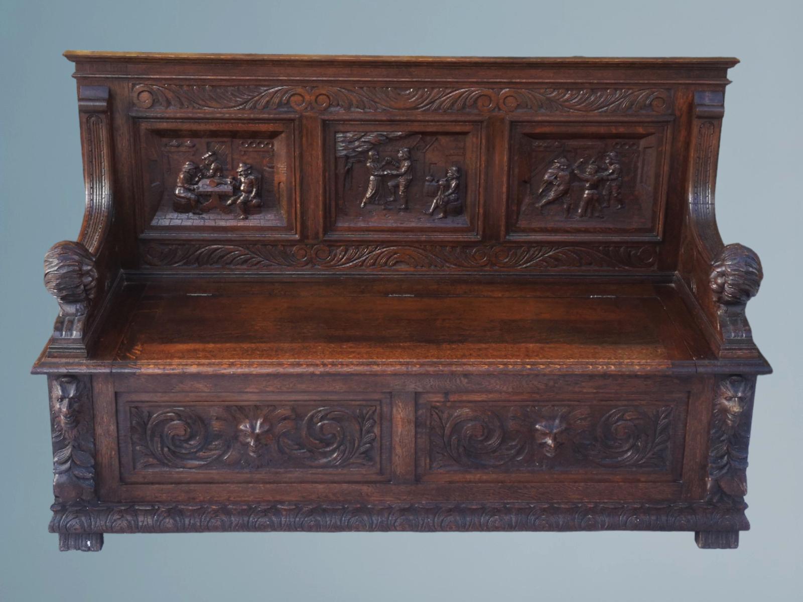 19th Century Victorian Carved Oak Green Man Box Settle (1 of 17)