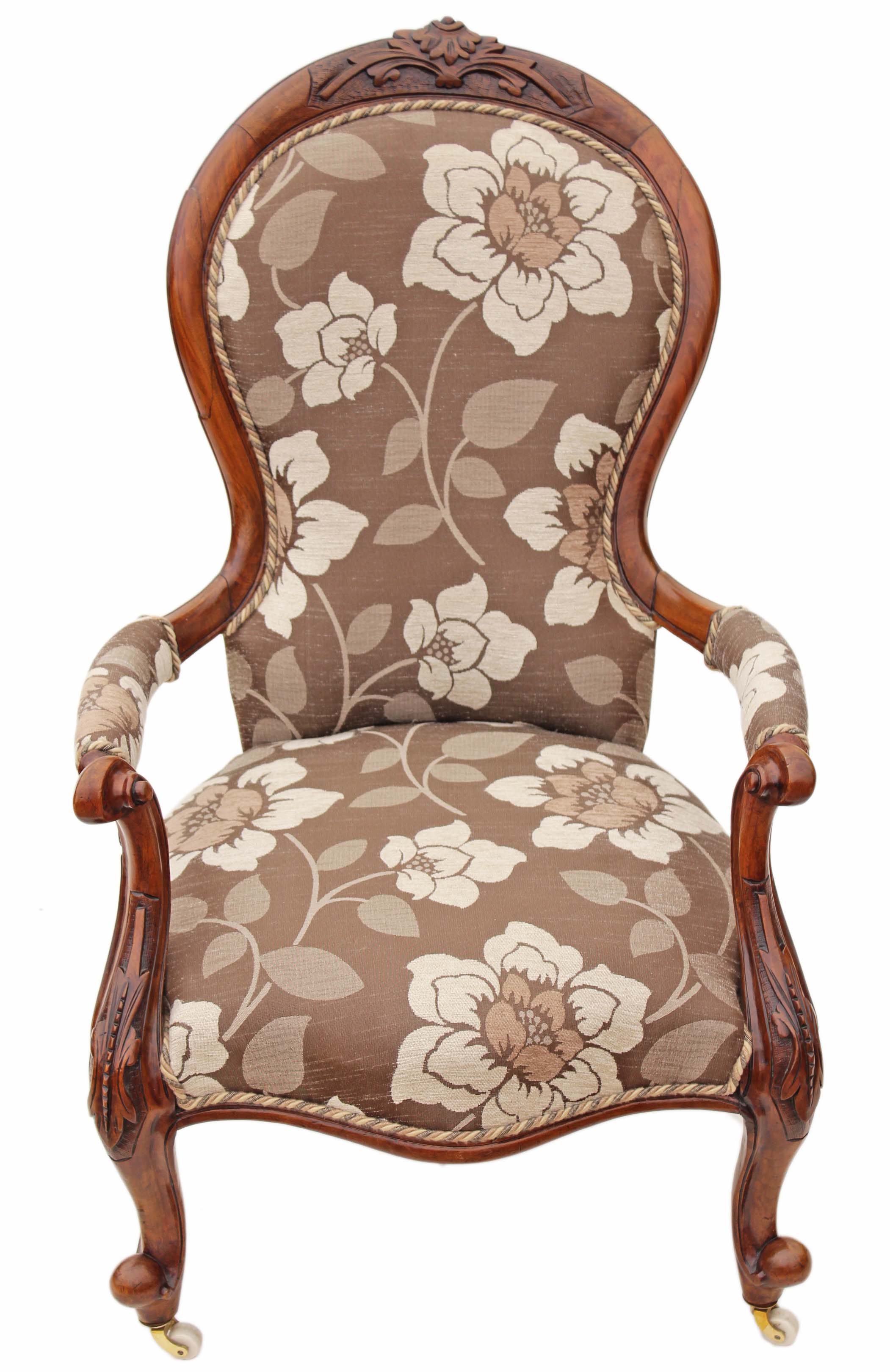 19th Century Victorian Carved Walnut Armchair / Spoon Slipper Back Chair