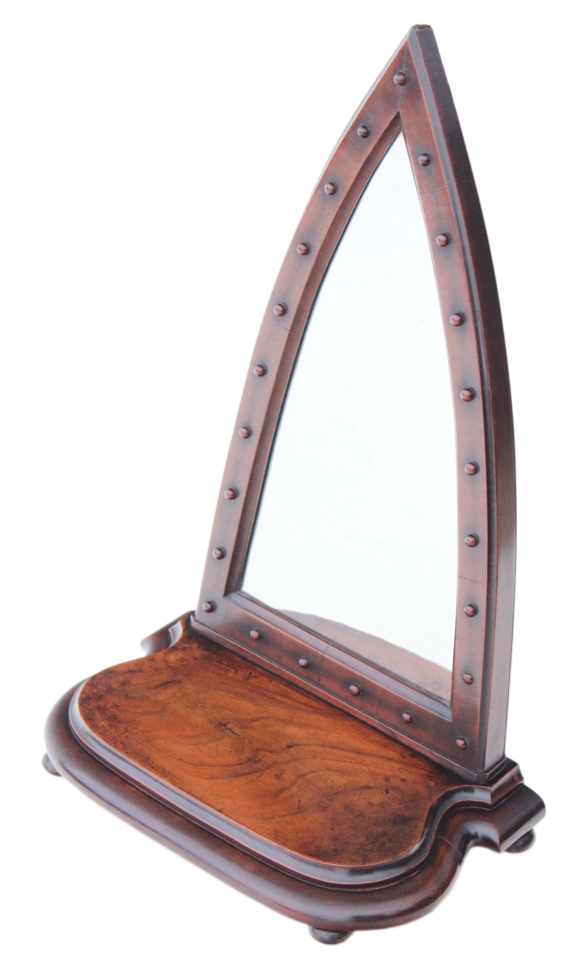 19th Century Victorian Designer Walnut Arched Dressing Table Mirror