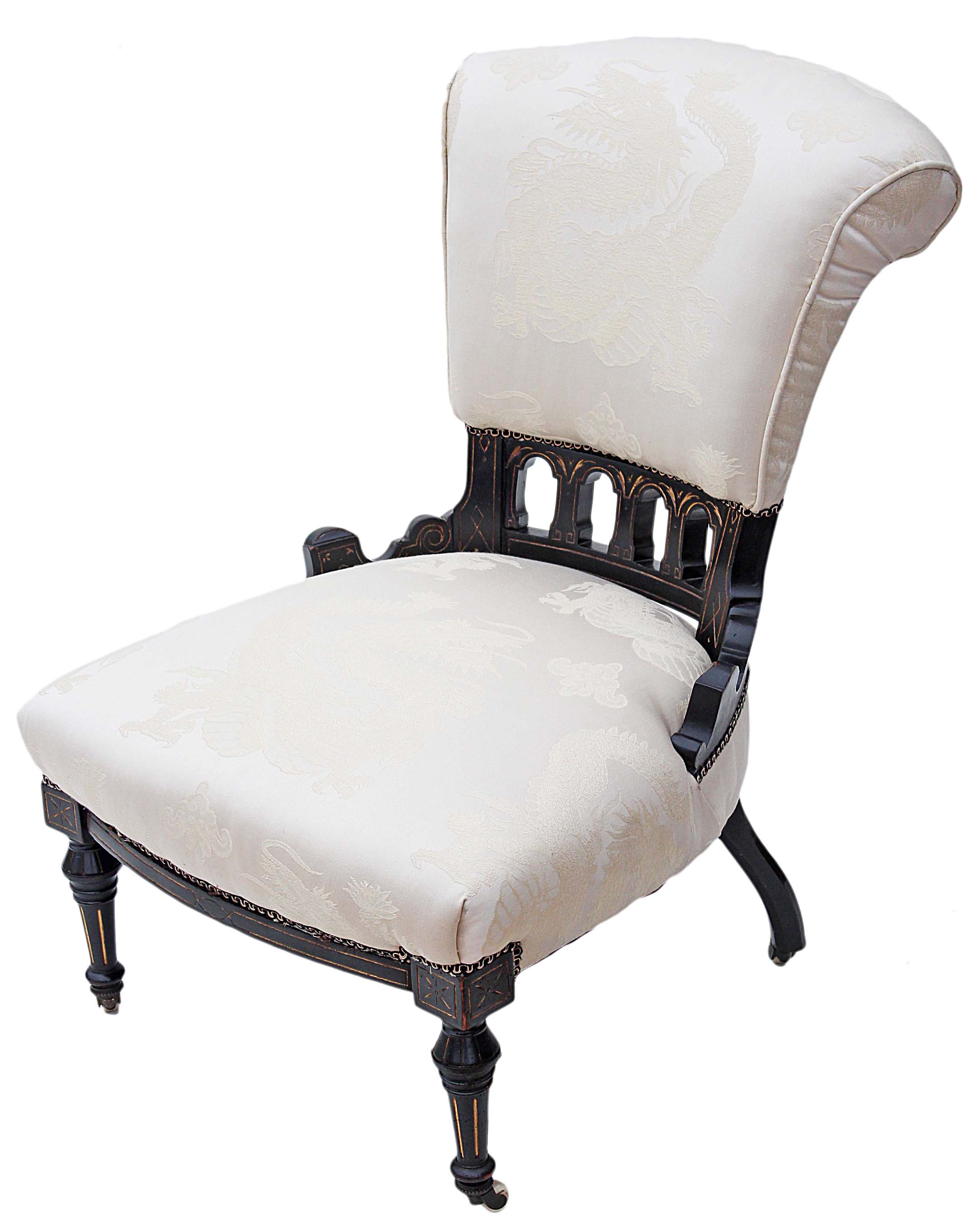 19th Century Victorian Ebonised Aesthetic Armchair Ladies Chair