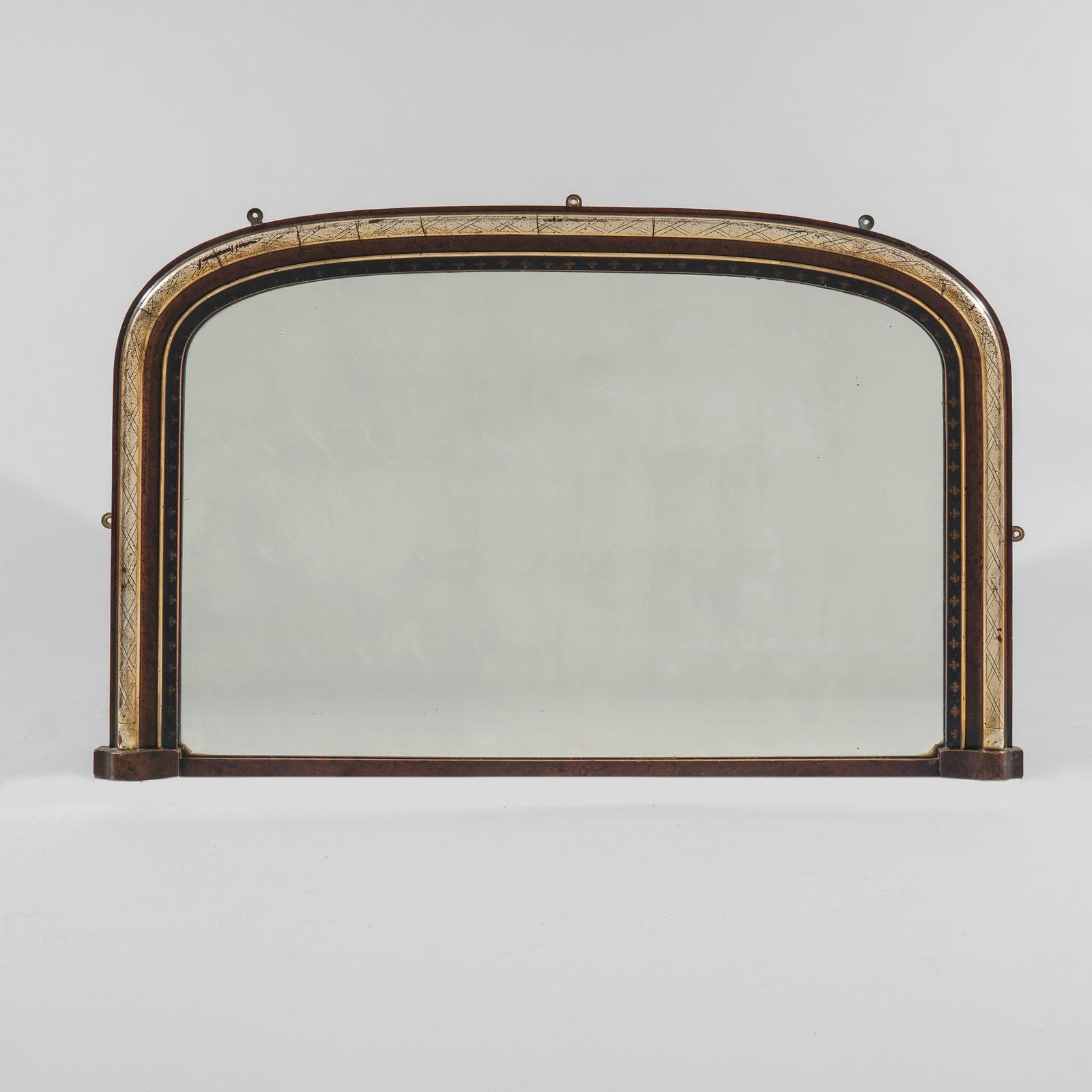 19th Century Victorian English Ebonised & Silvered Gilt Archtop Overmantle Mirror