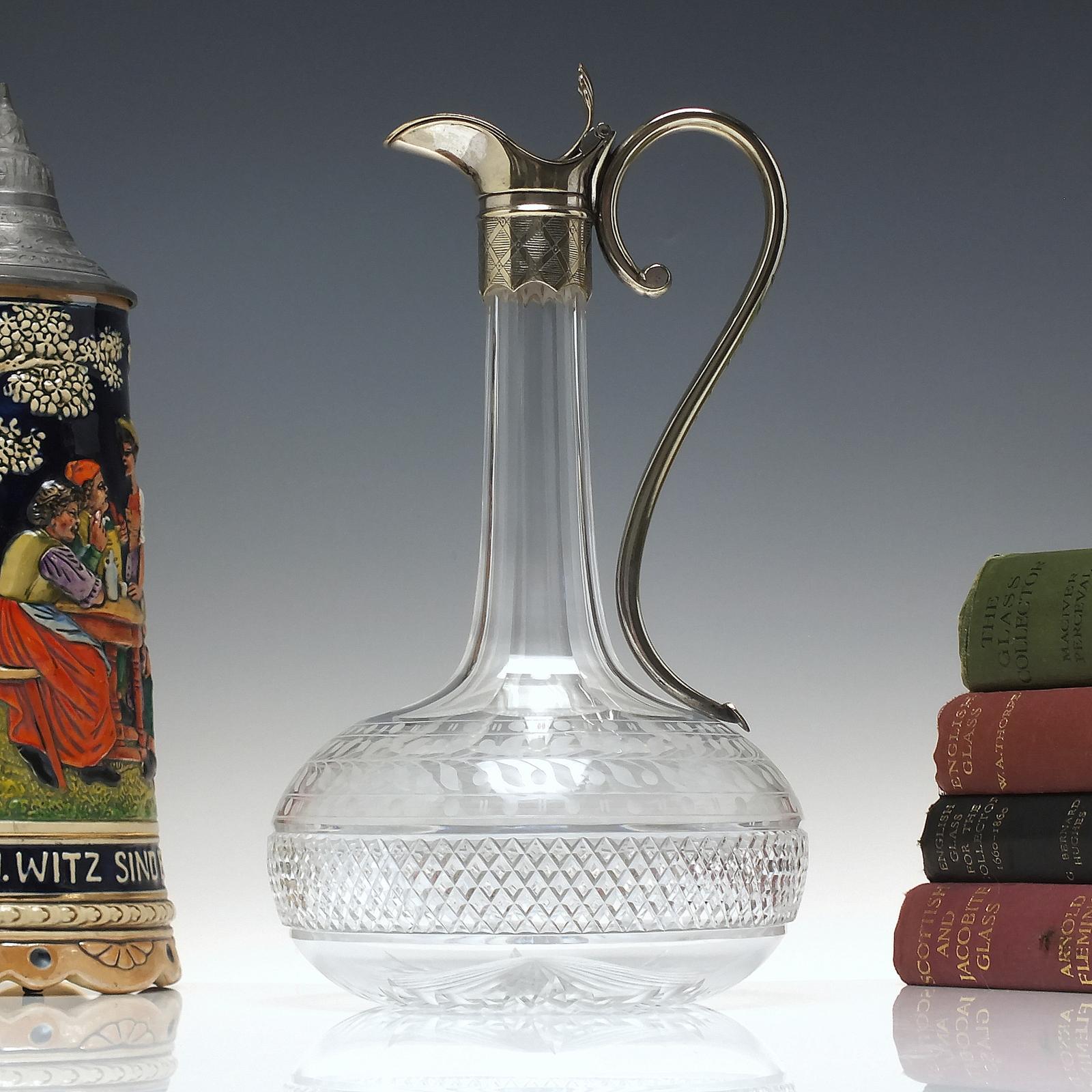 19th Century Victorian Engraved Glass Claret Jug with Silver Plated Handle c.1870