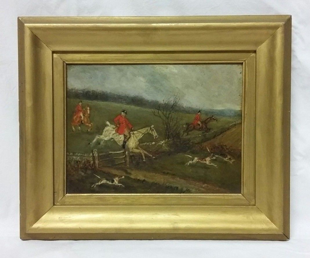 19th Century Victorian 'Fox Hunting' Oil On Panel Painting C.1890 (2 of 2)