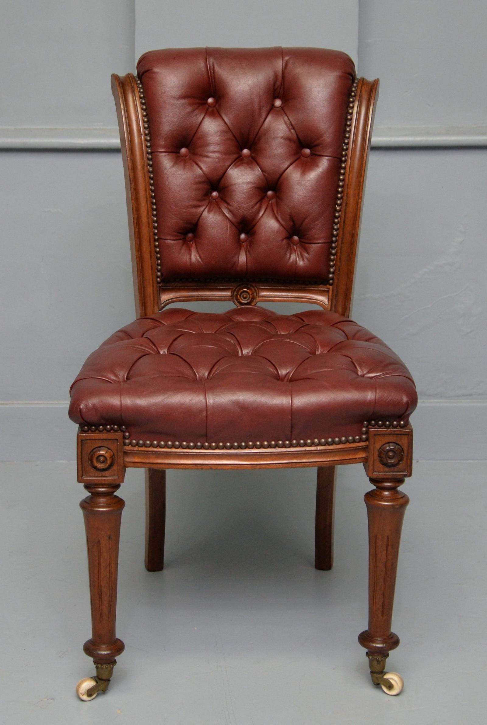 19th Century Victorian Leather & Walnut Desk Chair