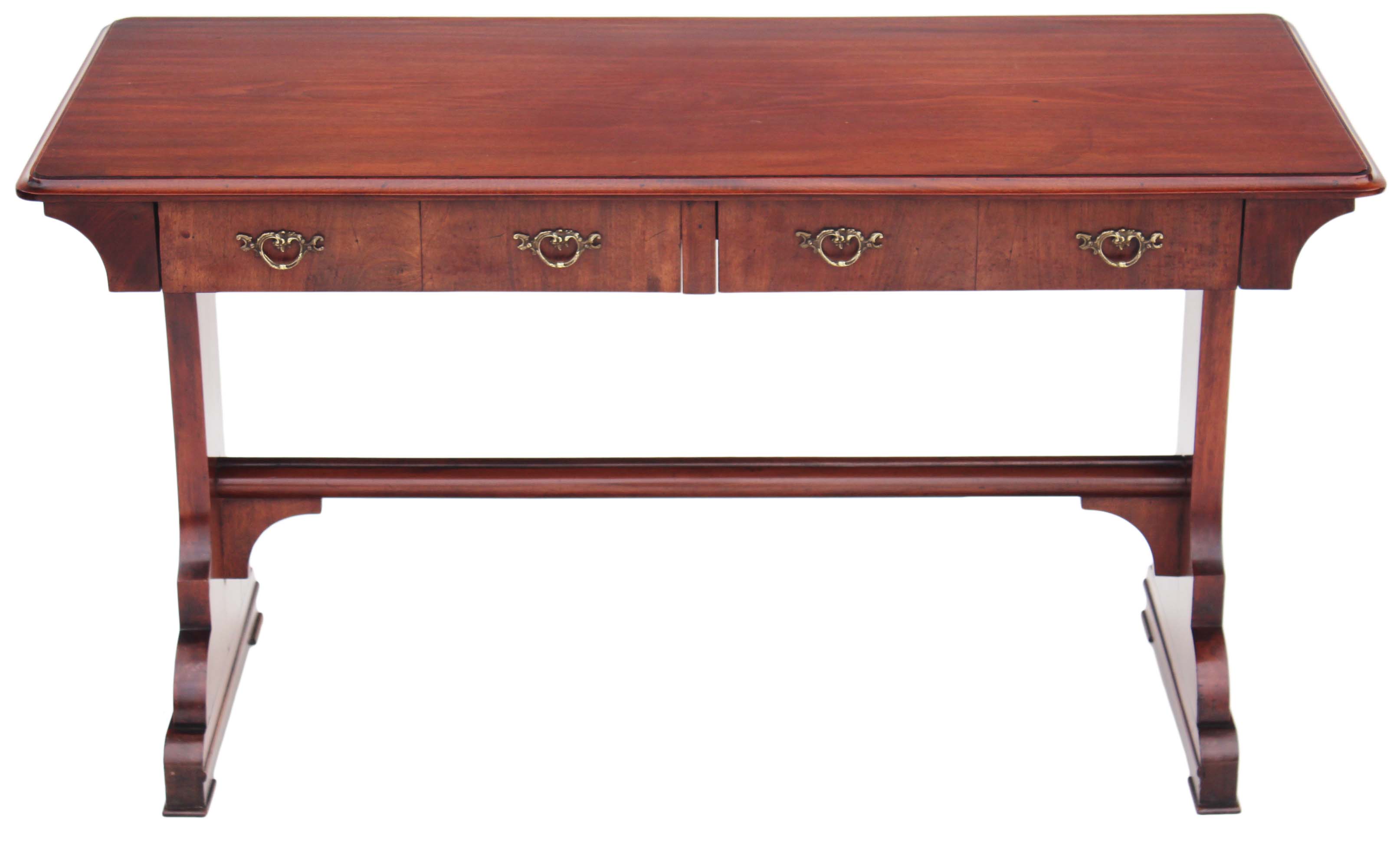 19th Century Victorian Mahogany Library Stretcher Table / Writing Table / Dressing Table