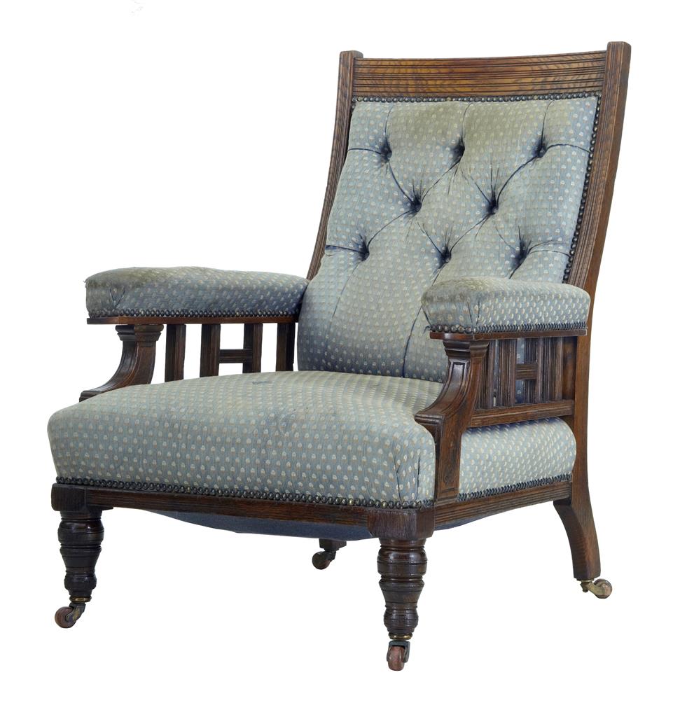 19th Century Victorian Oak Lounge Armchair (1 of 1)