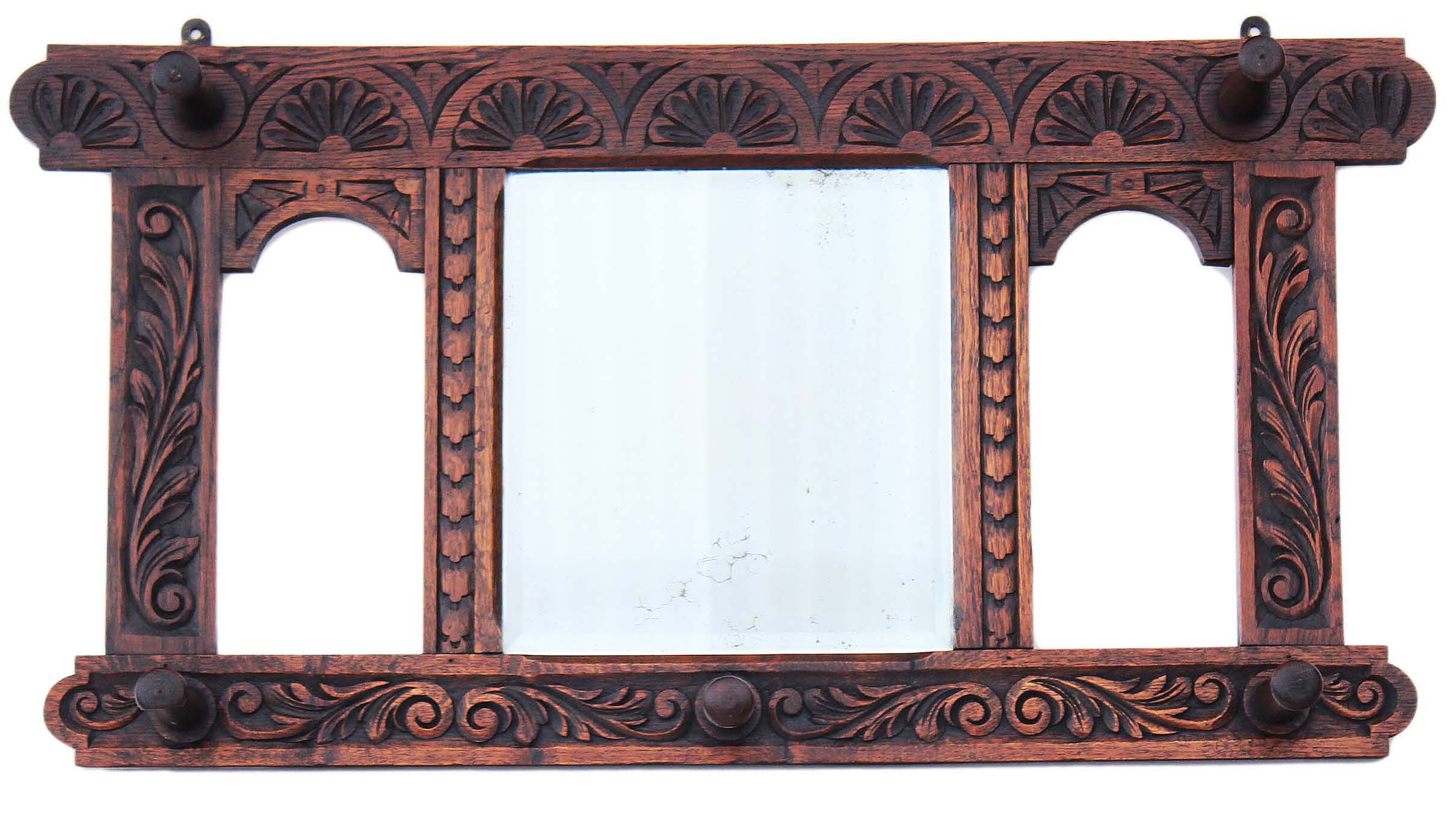19th Century Victorian Oak Wall Hanging Coat Stand / Hat Rack with Mirror
