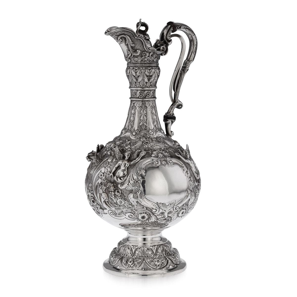 19th Century Victorian Solid Silver Armada Jug, London, c.1887