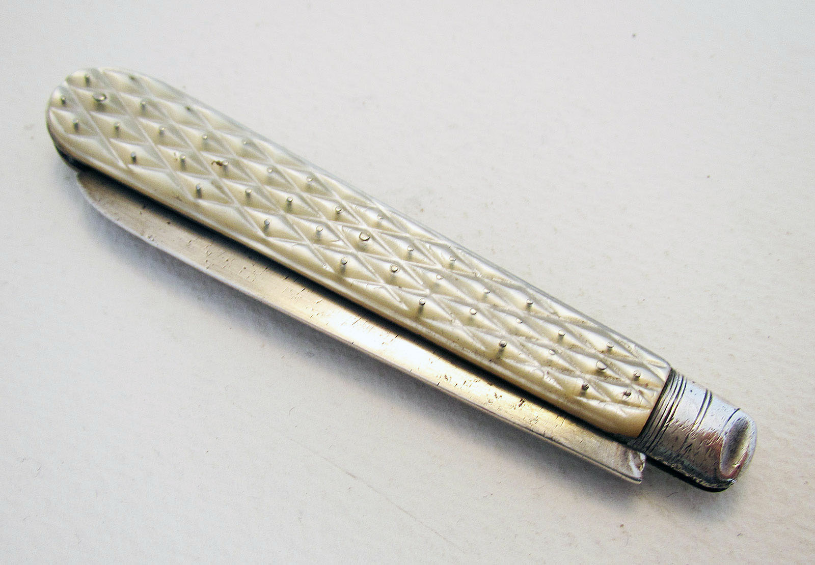 19th Century Victorian Solid Sterling Silver & Mother of Pearl Mop Antique Folding Pocket Fruit Pen Penknife Sheffield Hallmarked 1881