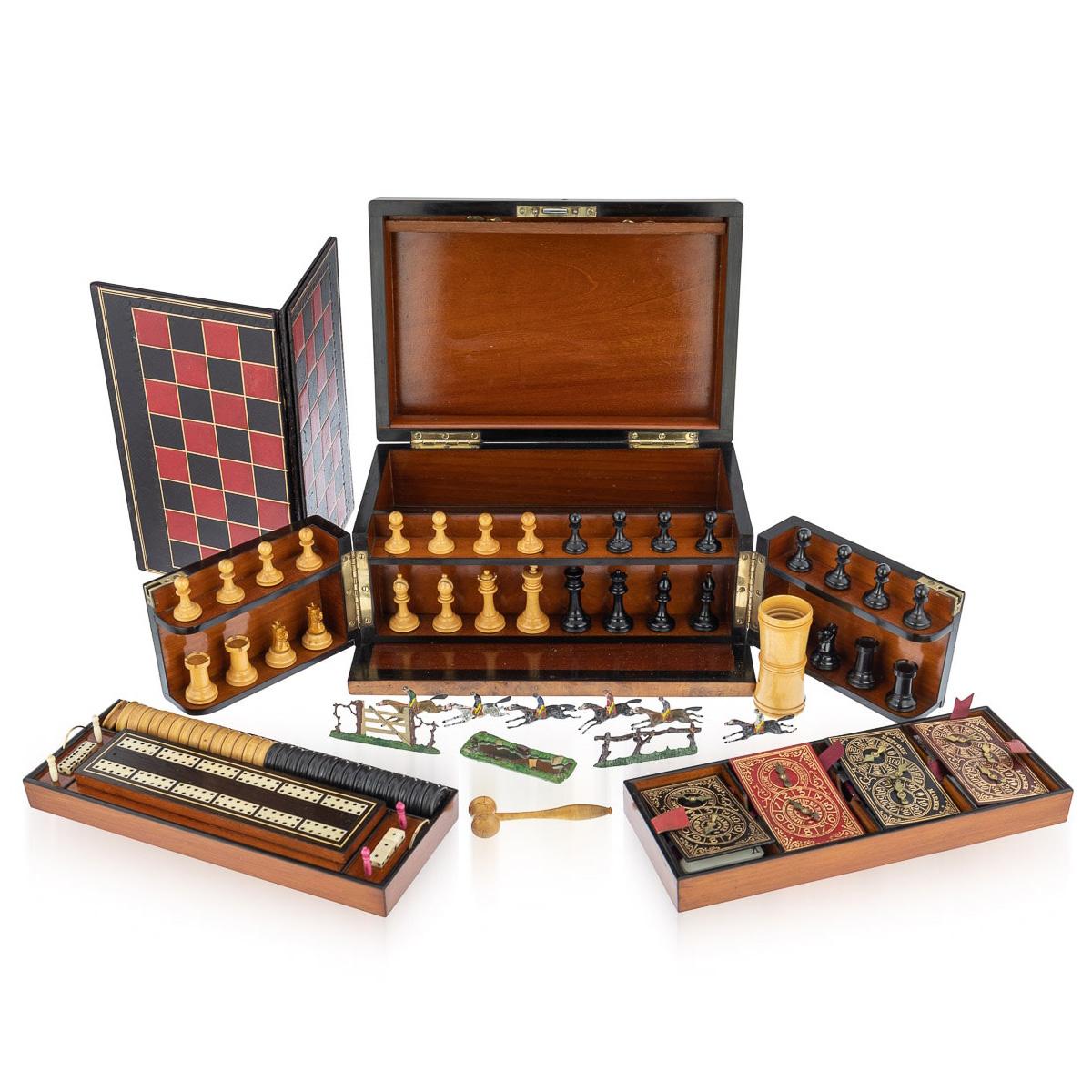 19th Century Victorian Walnut Games Compendium, Cards & Board Games, c.1890