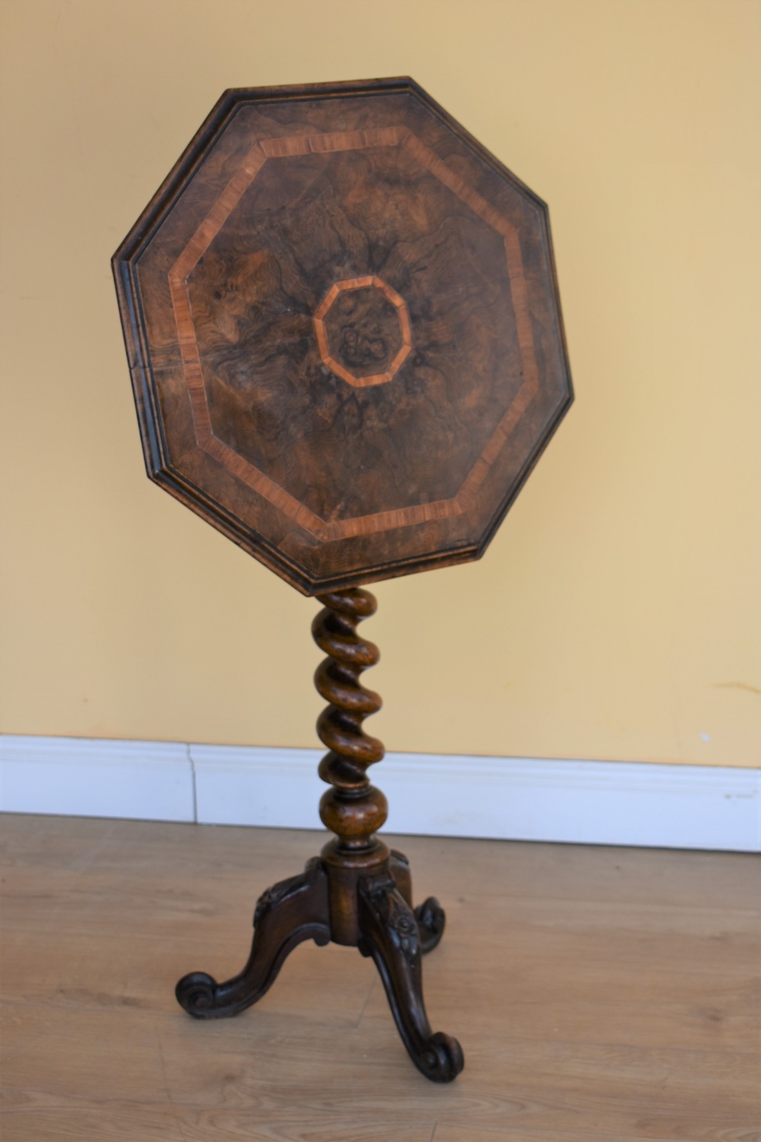 19th Century Walnut Cross Banded Octagonal Occasional / Tilt Top Table