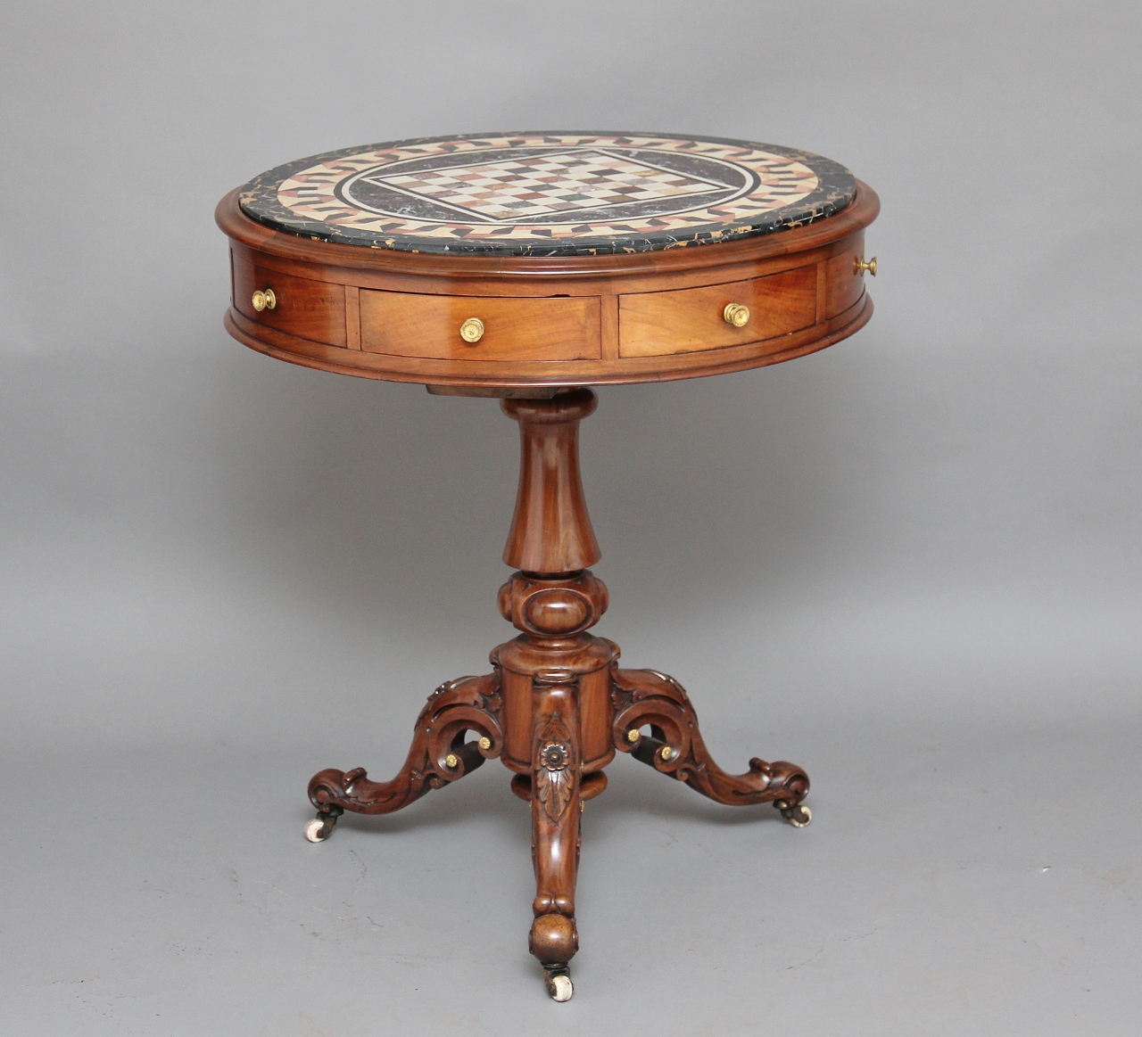 19th Century  Walnut & Marble Top Drum Table c.1850 (1 of 1)