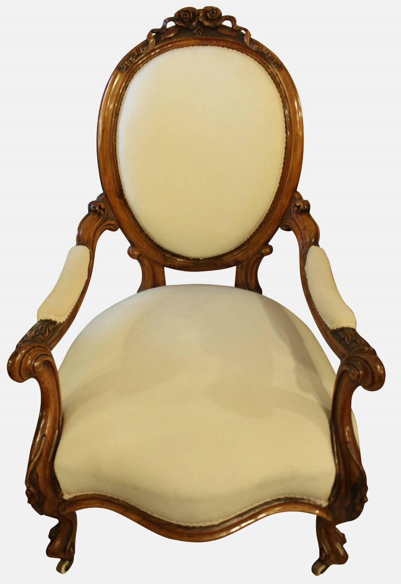 19th Century Walnut Open Armchair