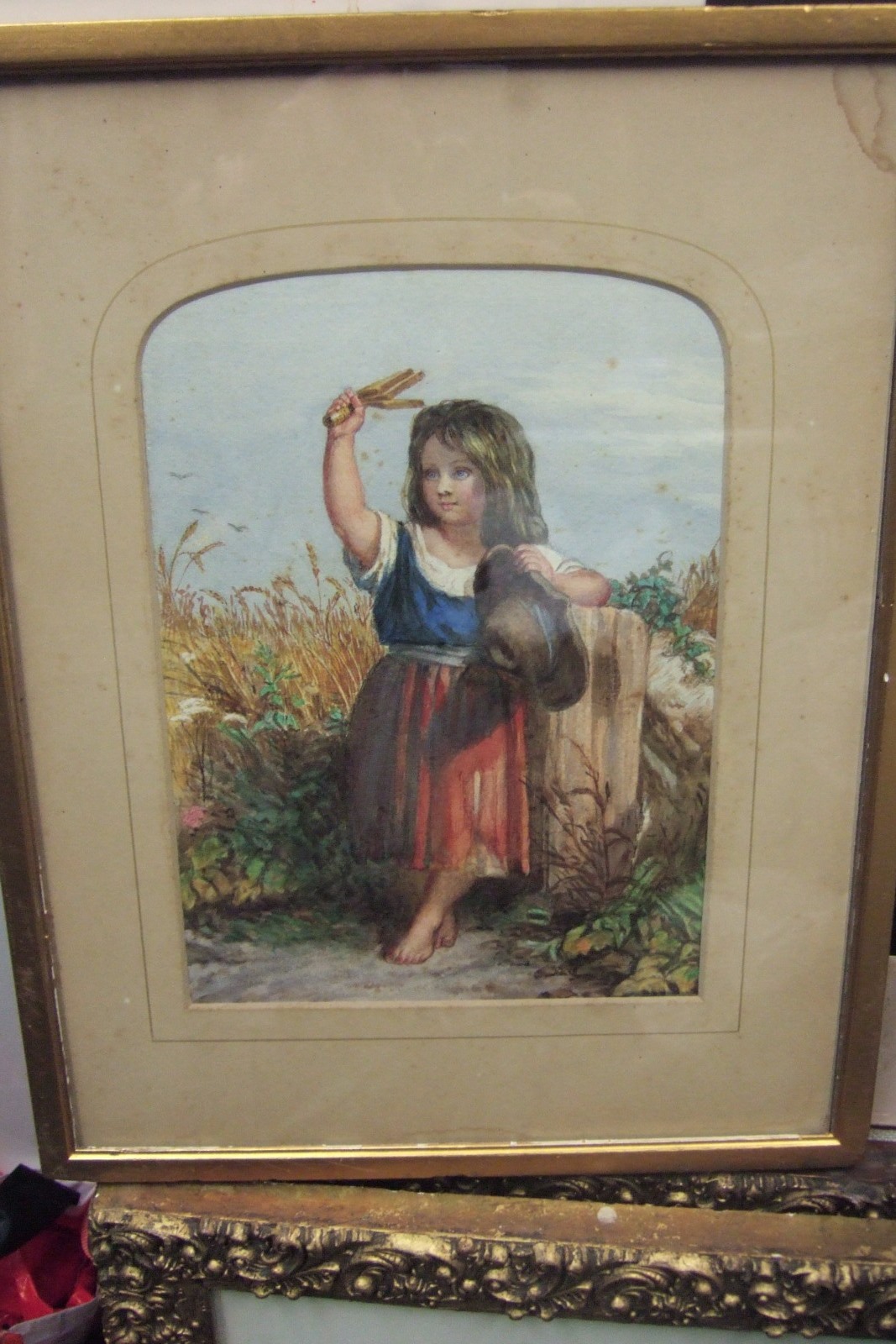 19th Century Watercolour of 'young girl scaring birds in a wheat field' (1 of 1)