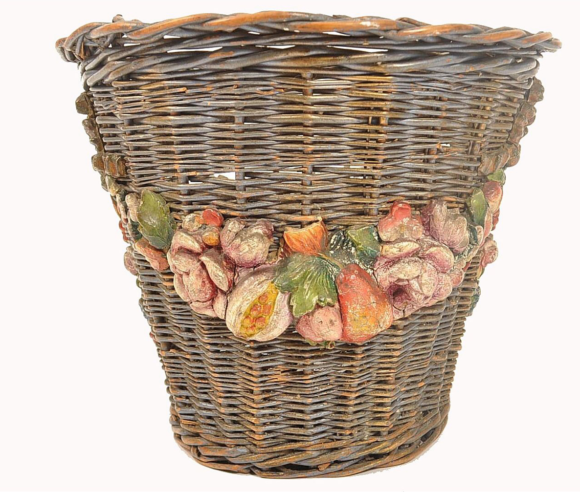 19th Century Wicker Basket with Barbola Work