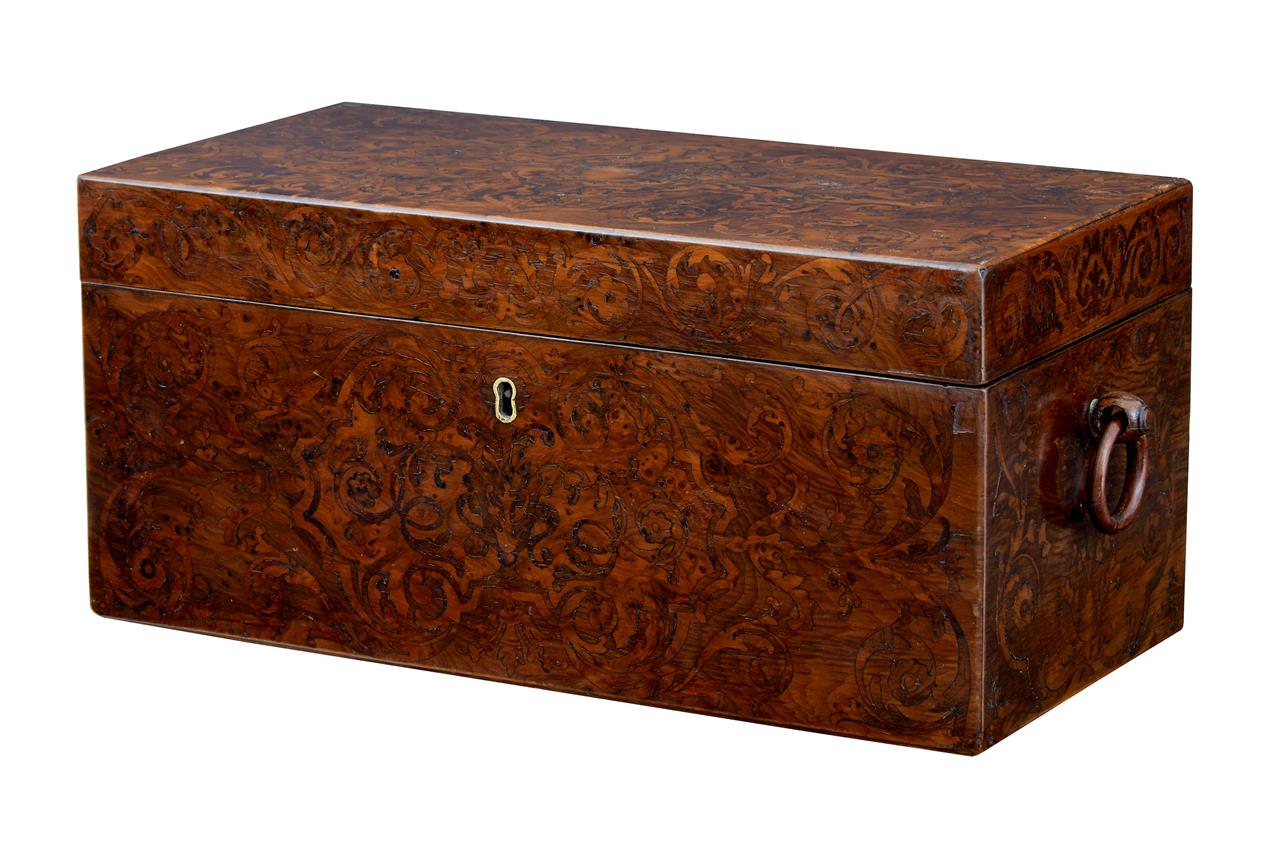 19th Century William IV Yew Wood Inlaid Tea Caddy