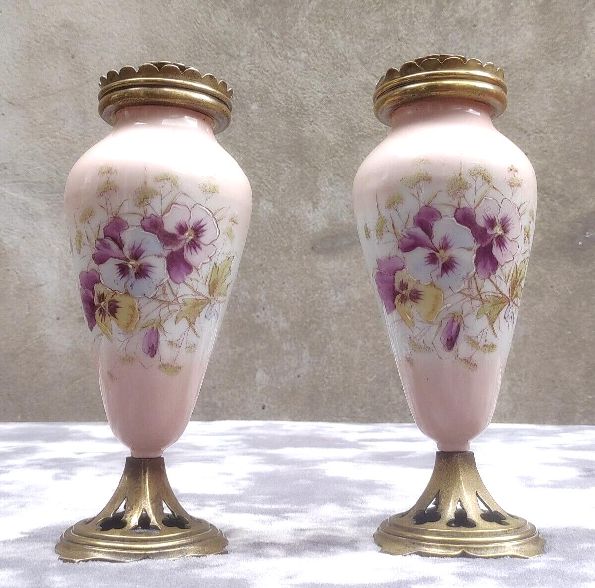 19th Century William Tonks & Sons Brass Ceramic Antique Candlestick Holders