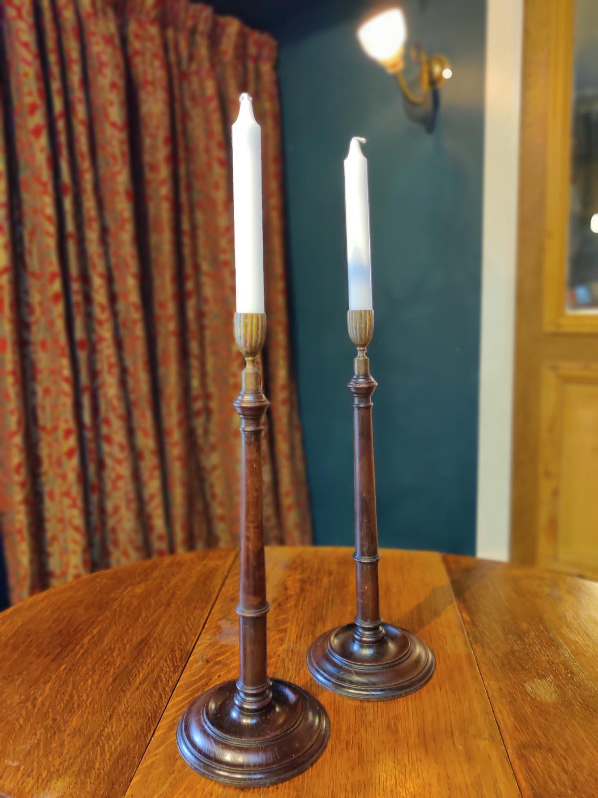 19th Century Wooden Turned Candlesticks