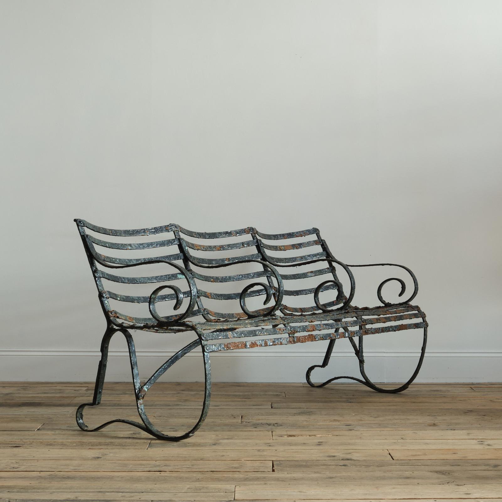 19th Century Wrought Iron Strap Work Garden Bench