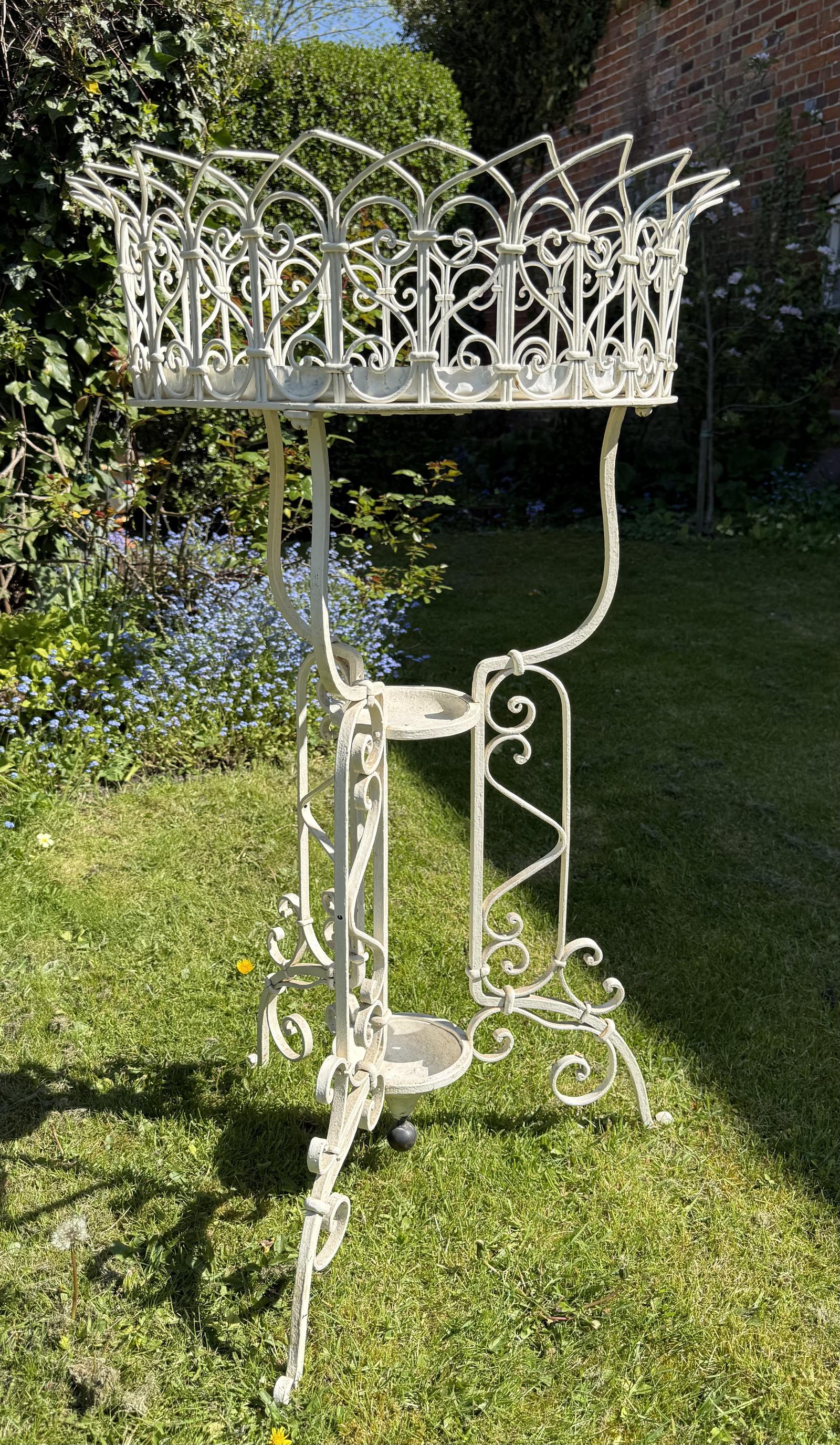 An elegant 19th Century wrought iron and wire work garden jardiniere, all in excellent original condition,excellent gothic inspired design, recently sourced from a private French chateau.