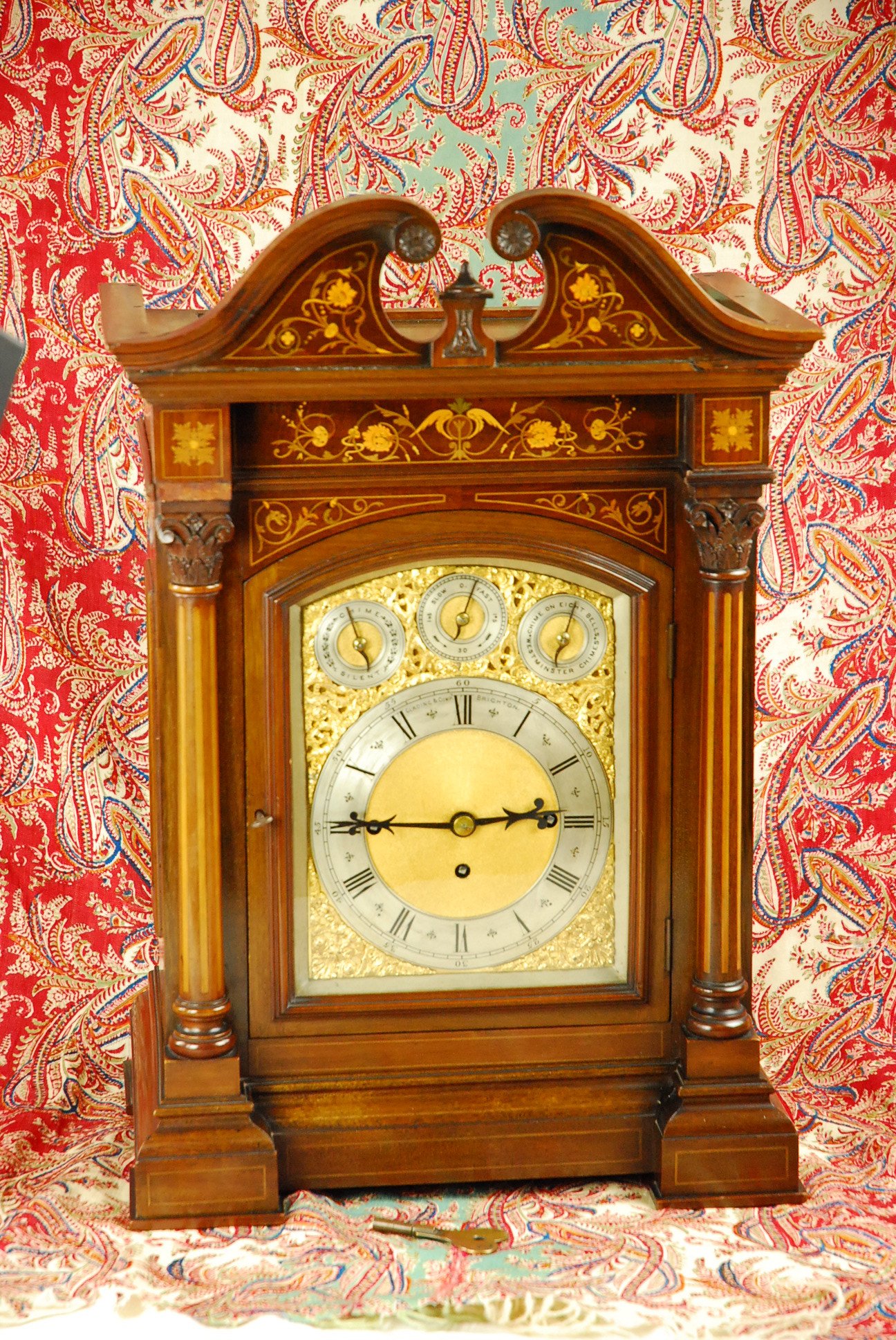19th Clocks Antique Marquetry Triple Fusee 8 Bells 5 Gongs Boardroom Bracket Clock c.1910