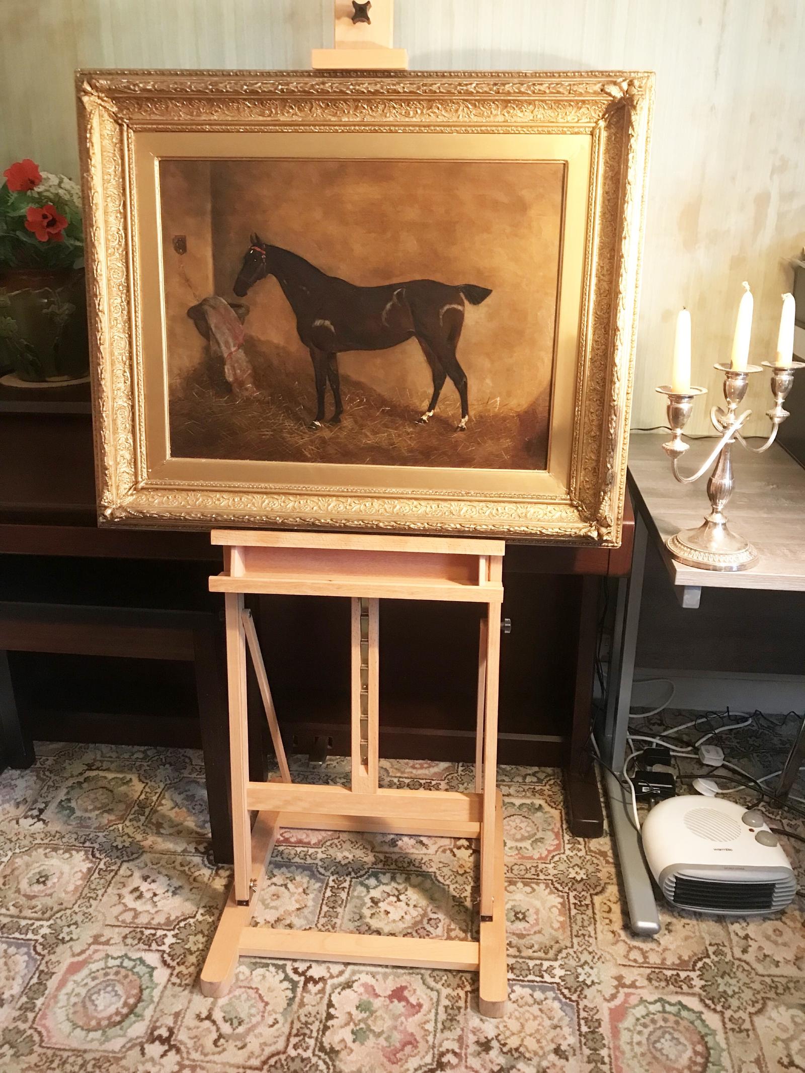 19th Equine Oil Painting Bay Hunter in Stable Signed Collander Goldsmith 1881