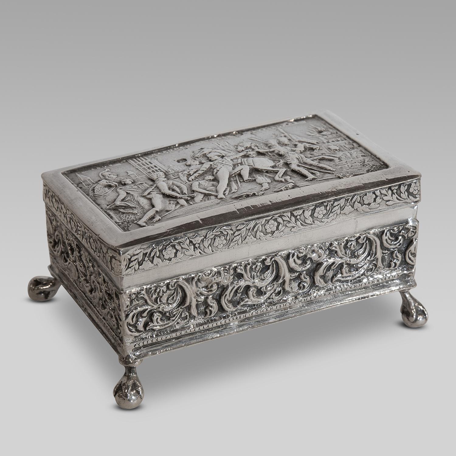 19thC Dutch Napoleonic battle scene silver box (1 of 4)
