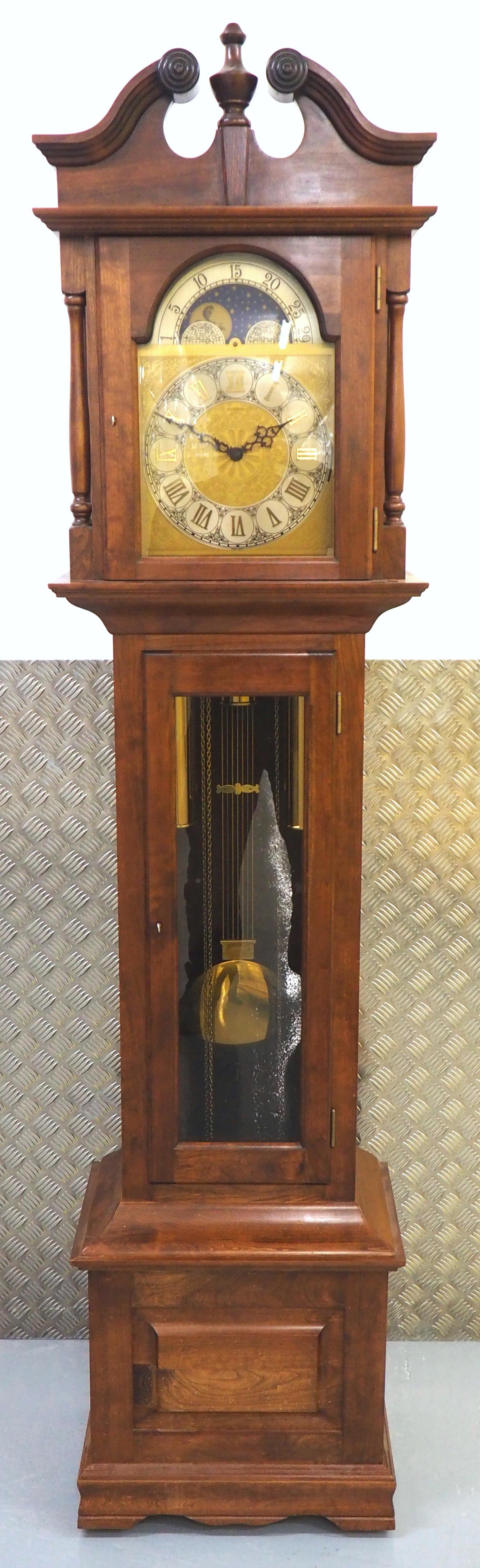 19thc English Style Chiming Longcase Clock Mahogany Case Silver & Brass Dial Moon Roller Triple Chiming Grandfather Clock (1 of 16)