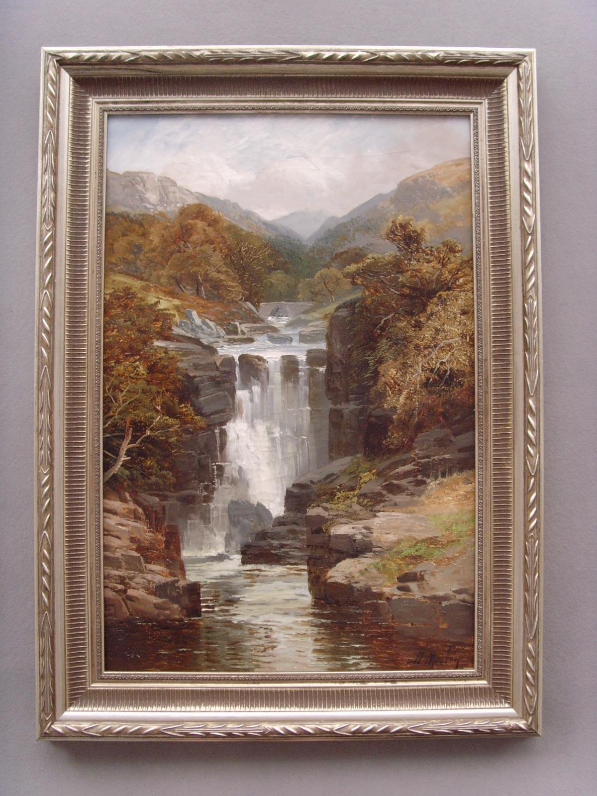 19Thc Landscape Oil Painting of Waterfall by David Motley (1 of 1)