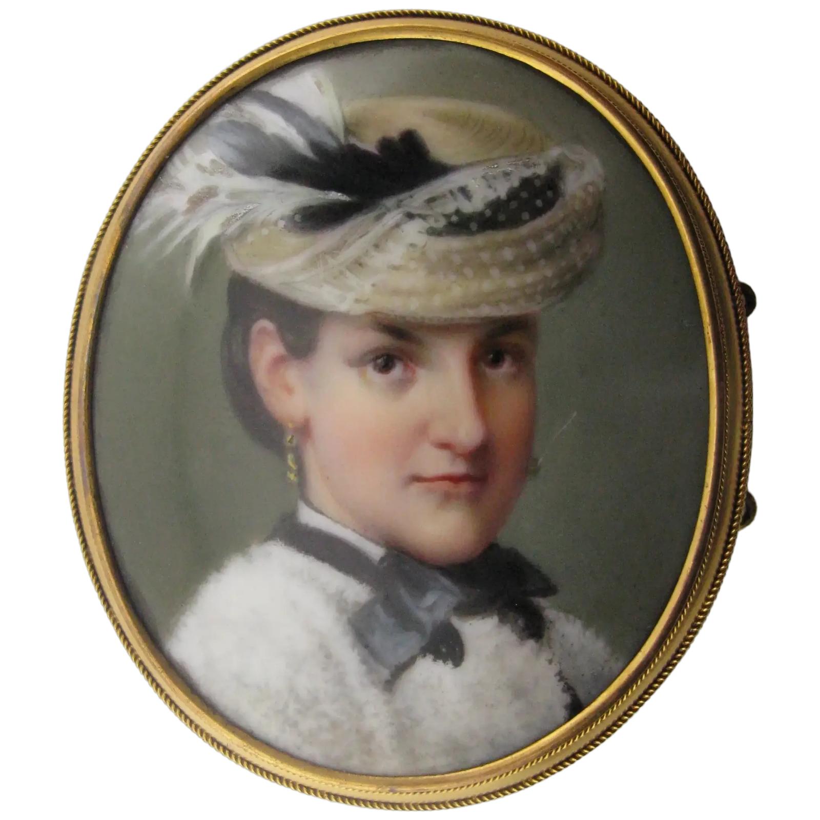 19thc Portrait Miniature Lady Enamels Porcelain 18k Gold Mount