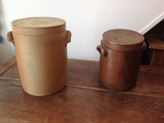2 Antique French Ironstone, Earthenware Confiture Jars with Lids VGC