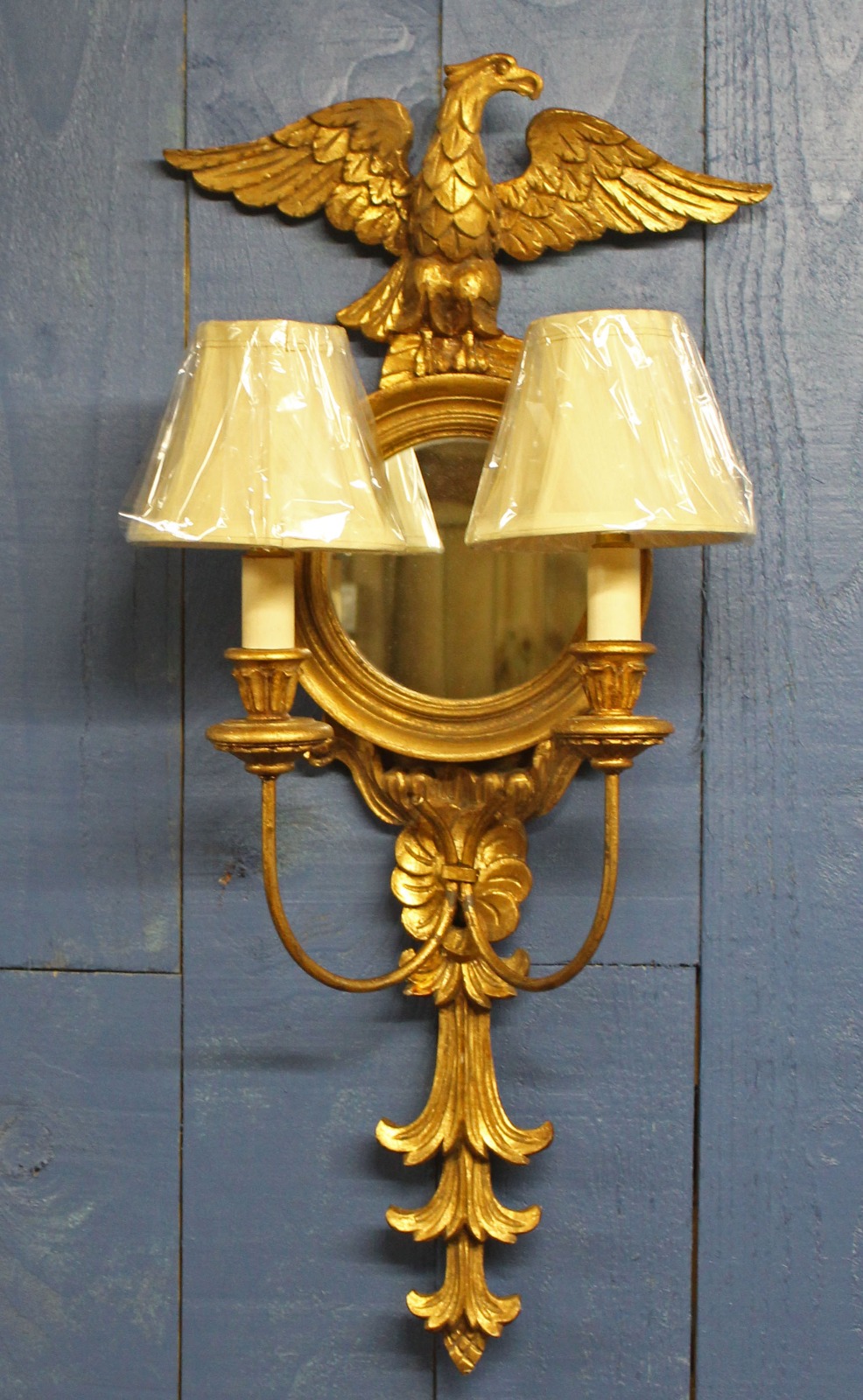 2 Branch Wall Light. Gilt Wood Mirrored Wall Sconce
