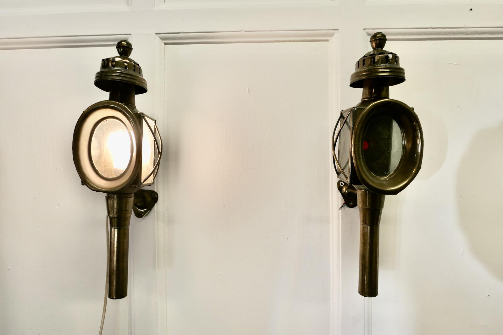 2 French Electrified Brass Carriage Lights, Wall Lanterns