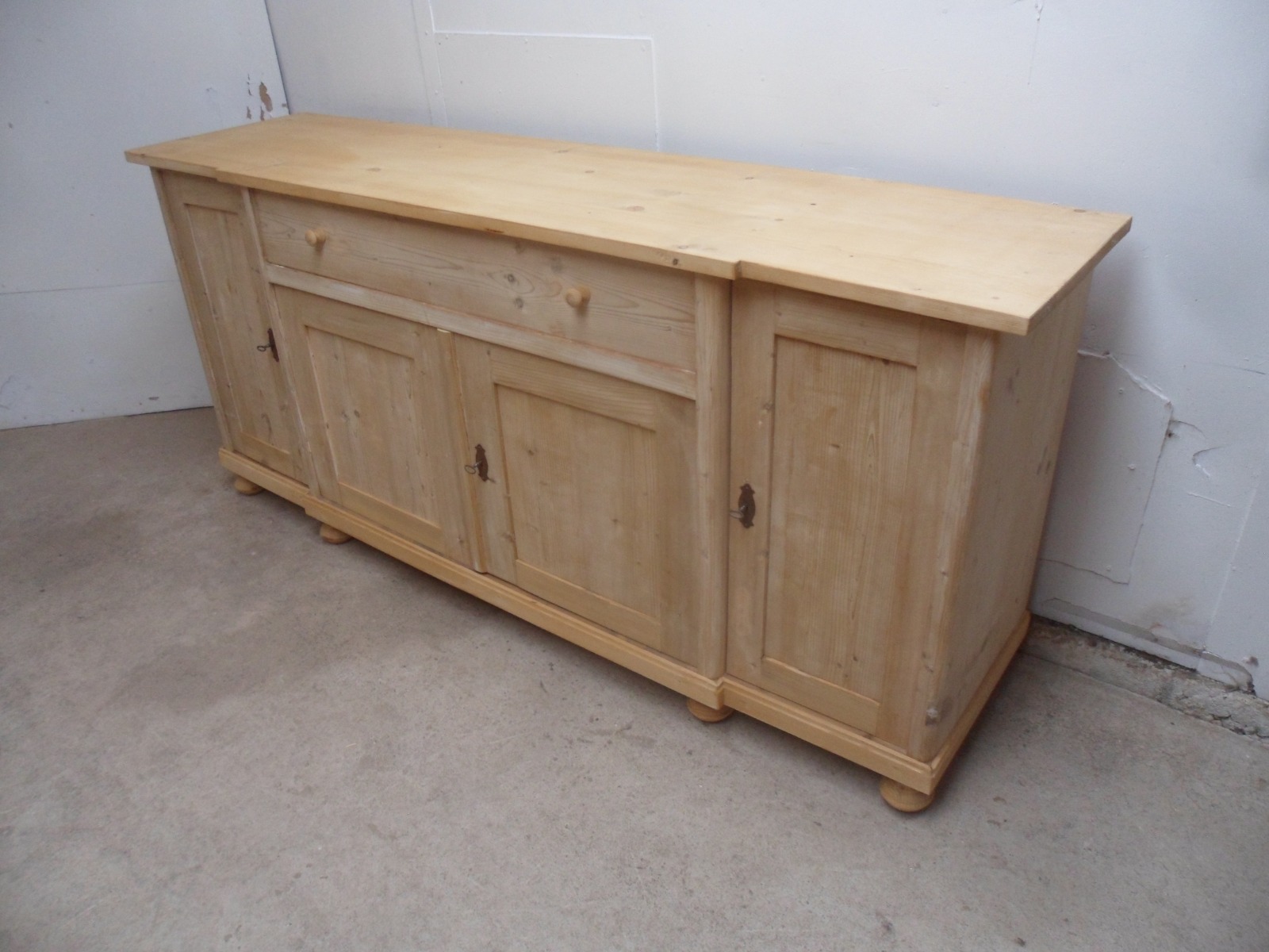 2 Metre Breakfront 4 Door Old Pine Dresser Base/ TV Stand to wax/ paint