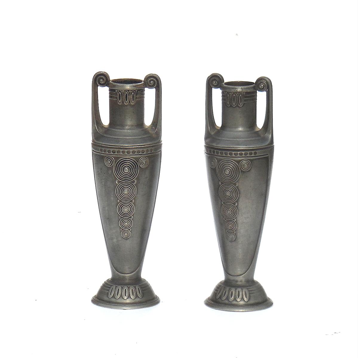 2 Vintage German Jugendstil Orivit Silverplate Vases C1905