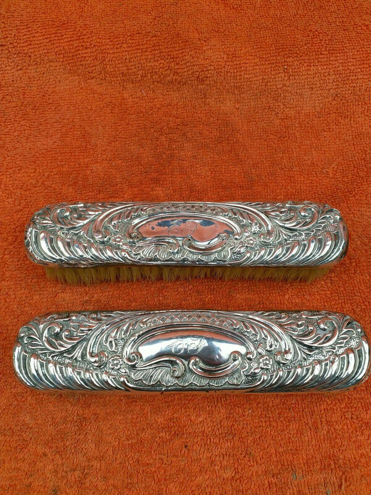 2 x Antique Sterling Silver Hallmarked Clothes Brush 1905 Williams (birmingham) Ltd