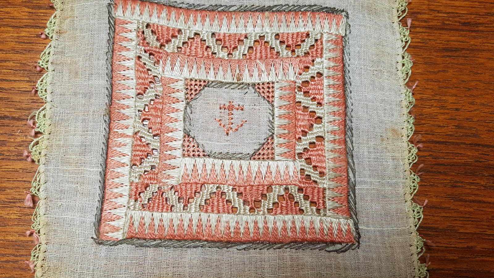 2 X Georgian Embroidered Squares, Silk, Linen, Gold Thread, Anchors