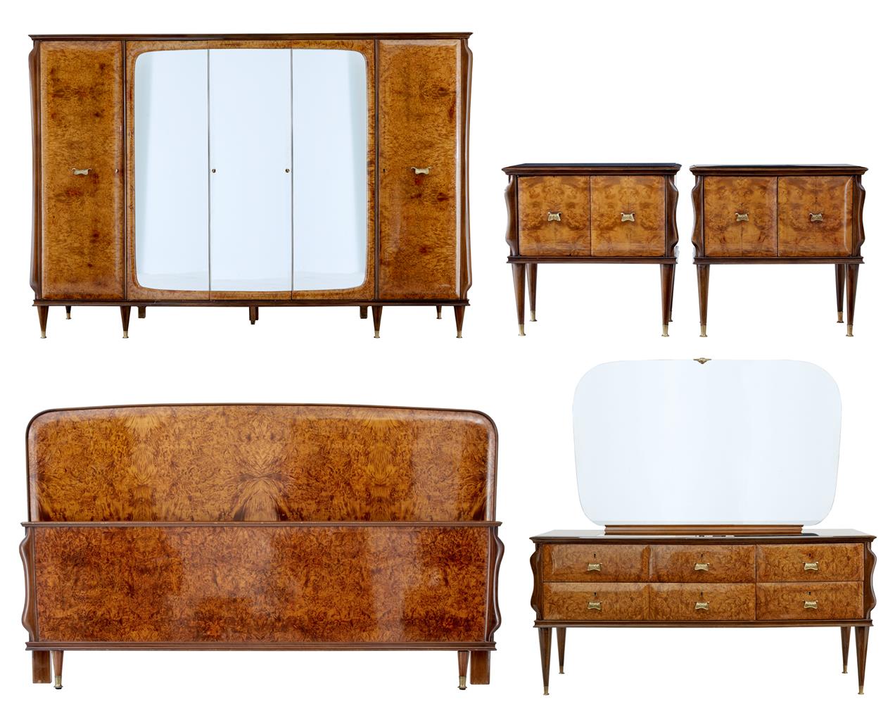 20th Century 1950's Italian Walnut & Mahogany Bedroom Suite