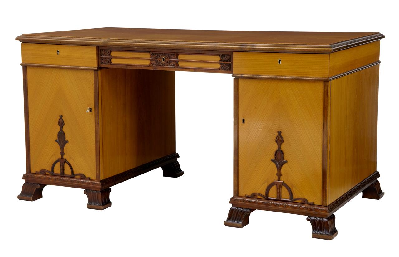 20th Century Art Deco Birch Pedestal Desk c.1920 (1 of 1)