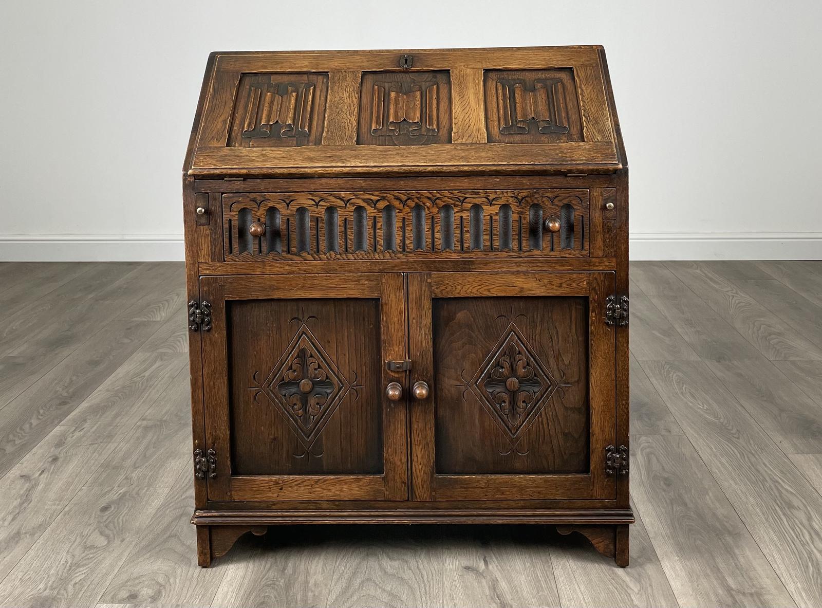 20th Century Carved Bureau in Oak c.1930 (1 of 13)