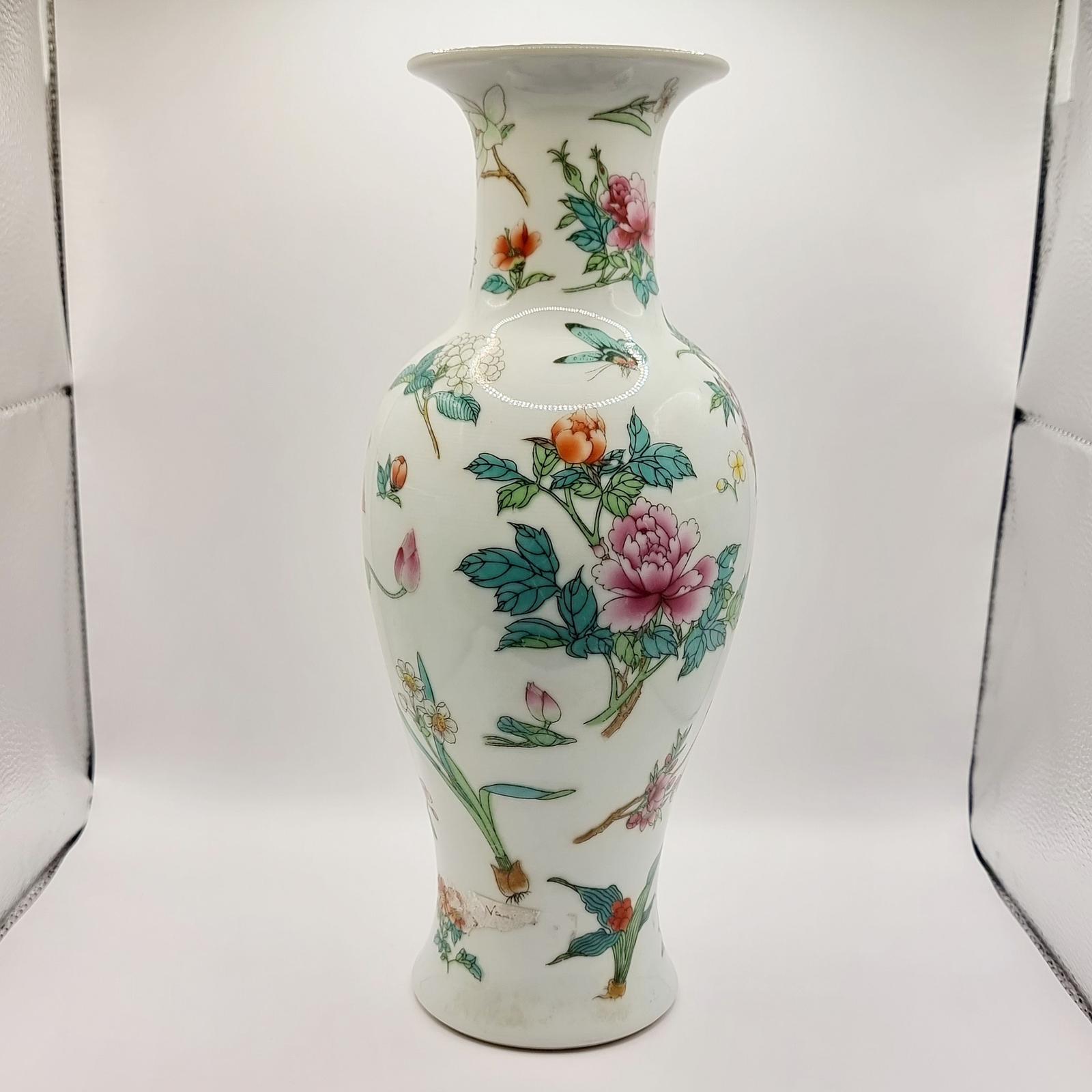 20th Century Chinese Famille Rose Floral Bulbous Vase