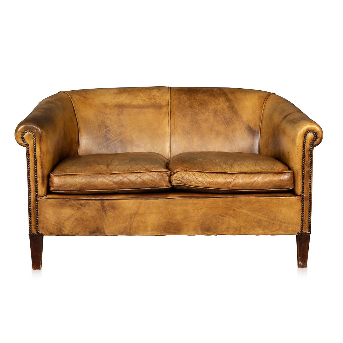 20th Century Dutch Two Seater Sheepskin Leather Sofa
