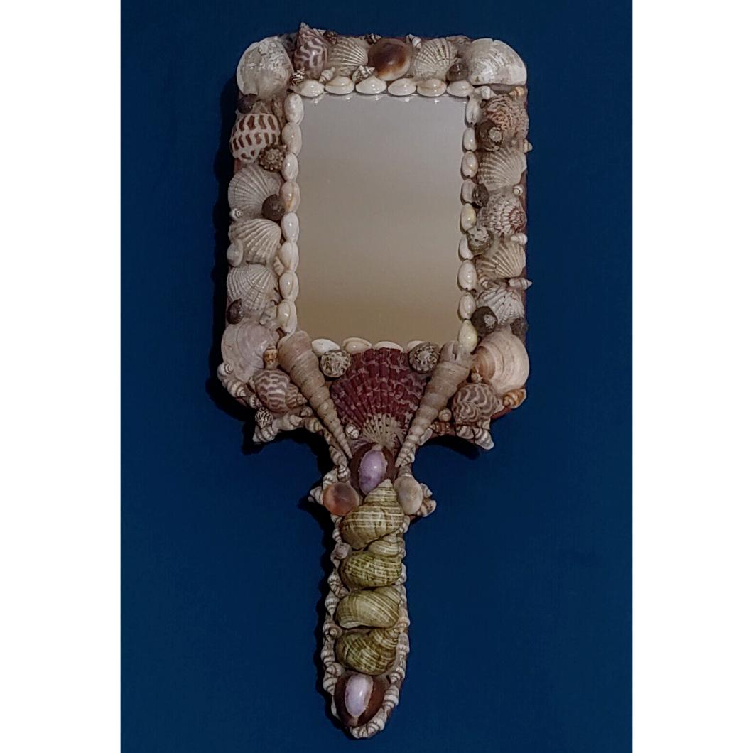 20th Century French Folk Art Seashore Shell Work Handheld Mirror