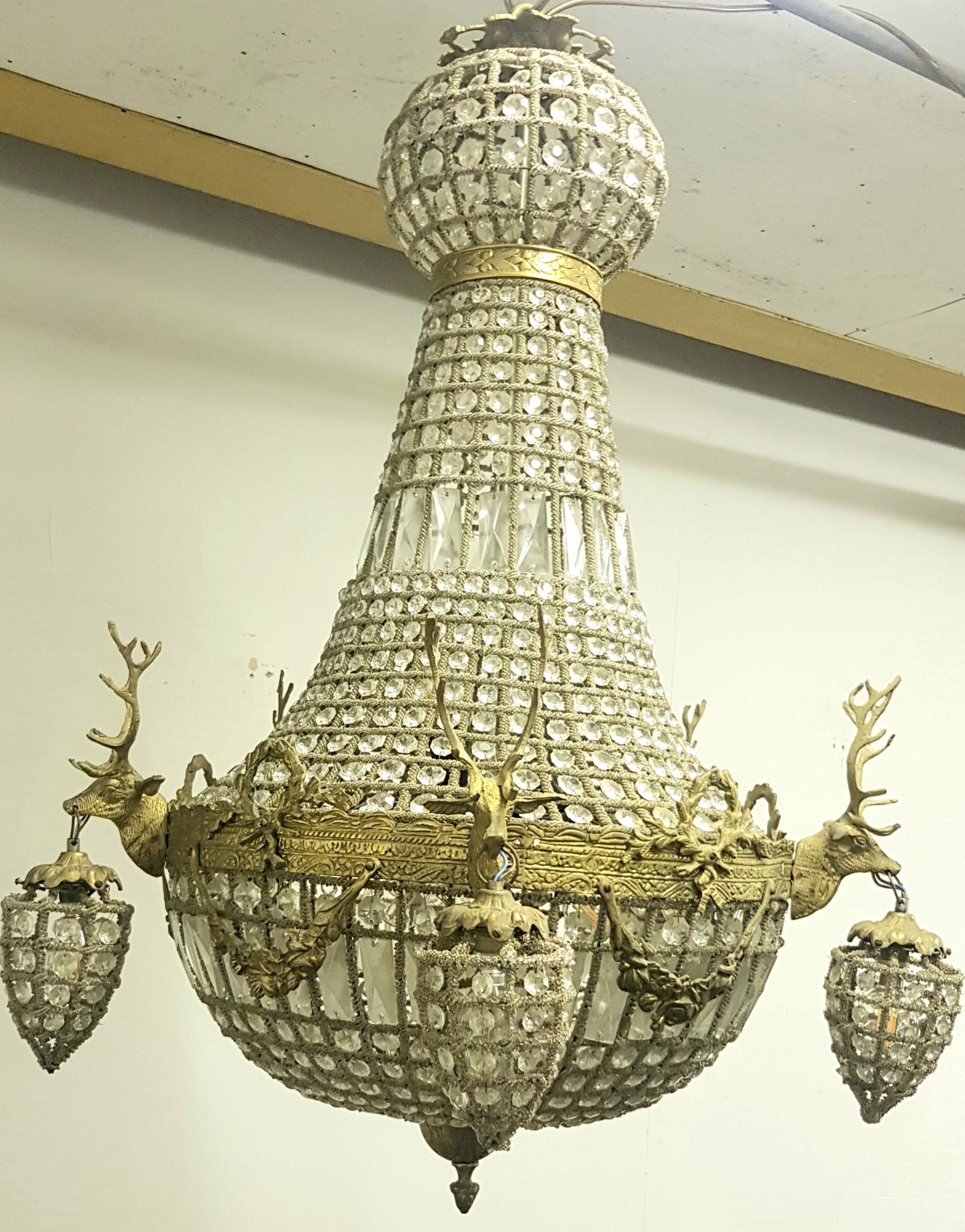 20th Century French Stags Head Ornate Chandelier