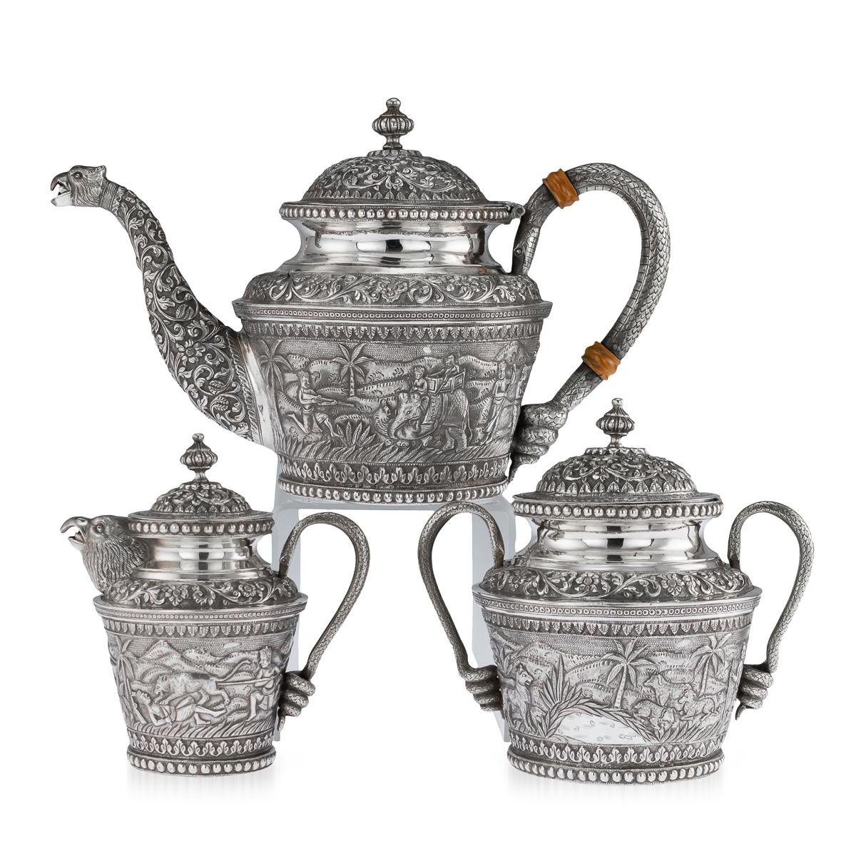 20th Century Indian Karachi-Cutch Solid Silver Tea Set, J Manikrai
